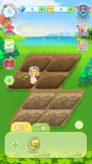 3、在农田界面,点击右下角【播种】开始种植第一株魔法植物。