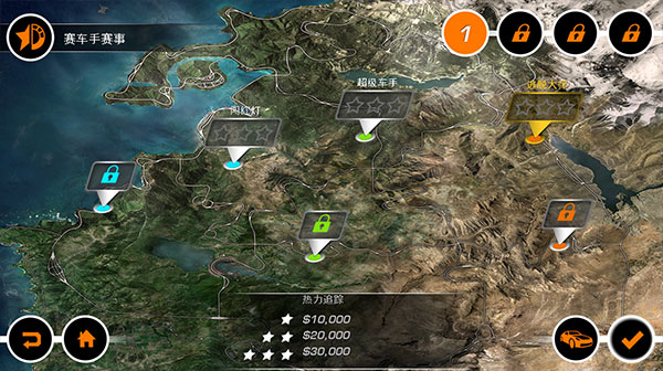 完成生涯模式,共有13条赛道等你称霸。60个成就和48款性能升级组件等你解锁。赢取现金,使用可视化与性能改装组建升级你的爱车