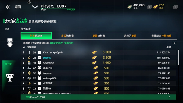 而在获得的英雄称号之后,在所有的英雄玩家之中又会有一个排行榜。如果还能在这一个排行榜中获得比较靠前的伤害值,或者击沉战舰数量,就可以同时获得了传奇称号。