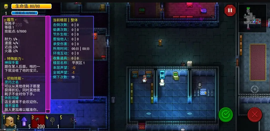 每局开始前,可在大本营进行深度定制: - 初始道具:向NPC购买实用装备; - 奖励预设:提前选定通关后希望获得的奖励类型; - 技能携带:付费添加强力技能(消耗鸡块”,仅生效一局); - 突变选择:自主搭配两个突变效果(可增益也可自虐),调节难度曲线。 所有操作均以鸡块”为货币,通过完成任务或通关获取,建议优先用于解锁新职业与楼层。
