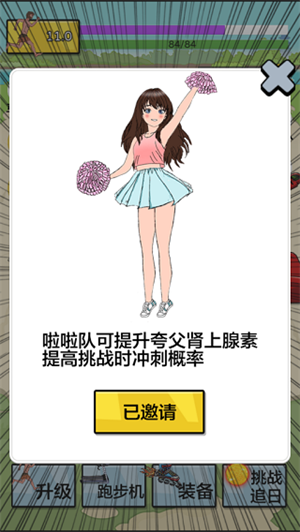 2、随着游戏的进展,还可以邀请到美女陪练,从而让夸父肾上腺素直接爆发,能够让跑步速度直接翻倍,奖励也是一样。