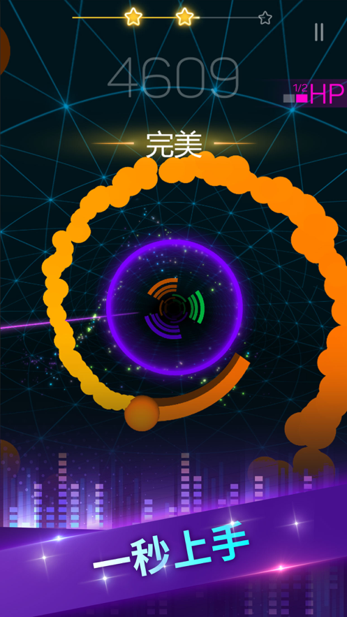 按着歌曲和节奏来进行敲击,并且需要注意圆环当中的颜色,但如果你击中另一个,一切都结束了!