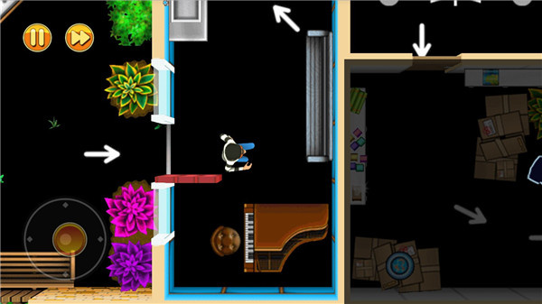 游戏操作简洁直观,仅需虚拟摇杆即可灵活控制角色移动。每一关都设定了全新且复杂的房屋结构,没有重复地图,考验你的观察力与临场应变能力。任务过程中还会随机触发各类事件,大幅提升重玩价值与沉浸感。无论是新手还是老玩家,都能在步步惊心的潜行中感受到成就感与快节奏的策略博弈。