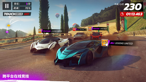 全新TOUCH DRIVE操作将帮你简化转向操作,让你专注于竞速的快感!但你也可以切换到手动控制(重力感应或点击转向),成为更专业的赛车手。