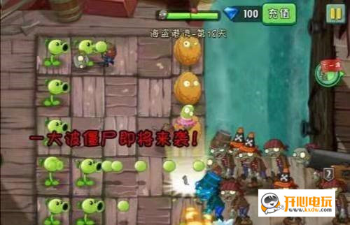 5、在甲板末端布置豌豆射手,并根据情况补充坚果或冰冻生菜以增强防御力。