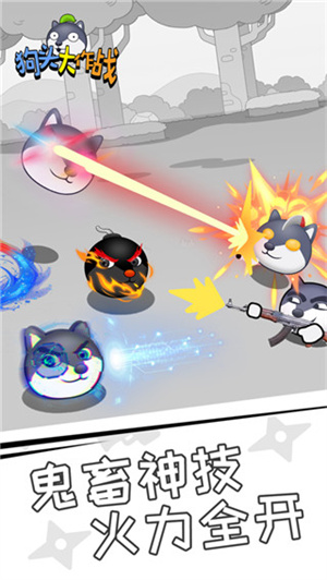 3、奇葩战斗场景,解锁特殊狗头角色,享受魔性乱斗乐趣,释放炫酷技能特效,火力全开畅爽体验。