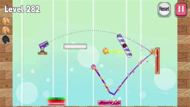 3、在关卡中你需要利用墙壁来使球反弹,因为障碍物你没法直接到达终点。