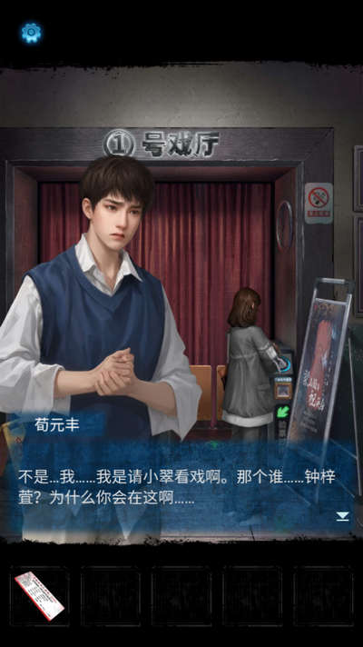 6、点击木柜子右边的模型,点左下角获得小人头;回到梦嫣被绑住的地方,点击右侧的戏台,将木偶放在上面触发剧情;点击新出现的洞,点击中间的天平,将纽扣和铁条放在梦嫣的人偶上;点击左侧的大钥匙;点击下面的棋盘。