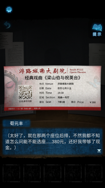 7、点击座位上的木盒,将文字排列成奠丧婚吉嫁”后开启,获得化妆笔。