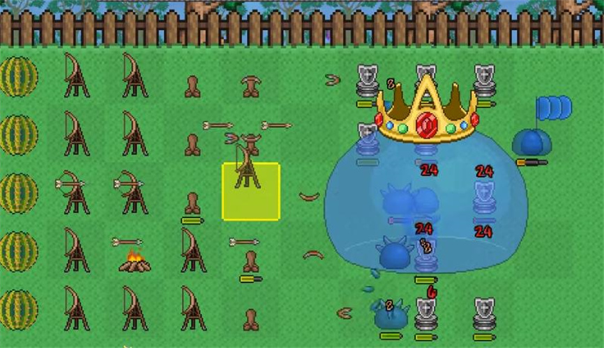 3、史莱姆boss来袭,需要多注意,布置好豪华阵容,这是胜利的关键。