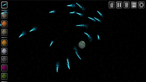 “Still”模式下,所有被添加的天体都会不可避免地发生碰撞,不过这种模式下的碰撞速度和角度无法手动调节,系统会自动设定目标和方向,因此相对简单易用。