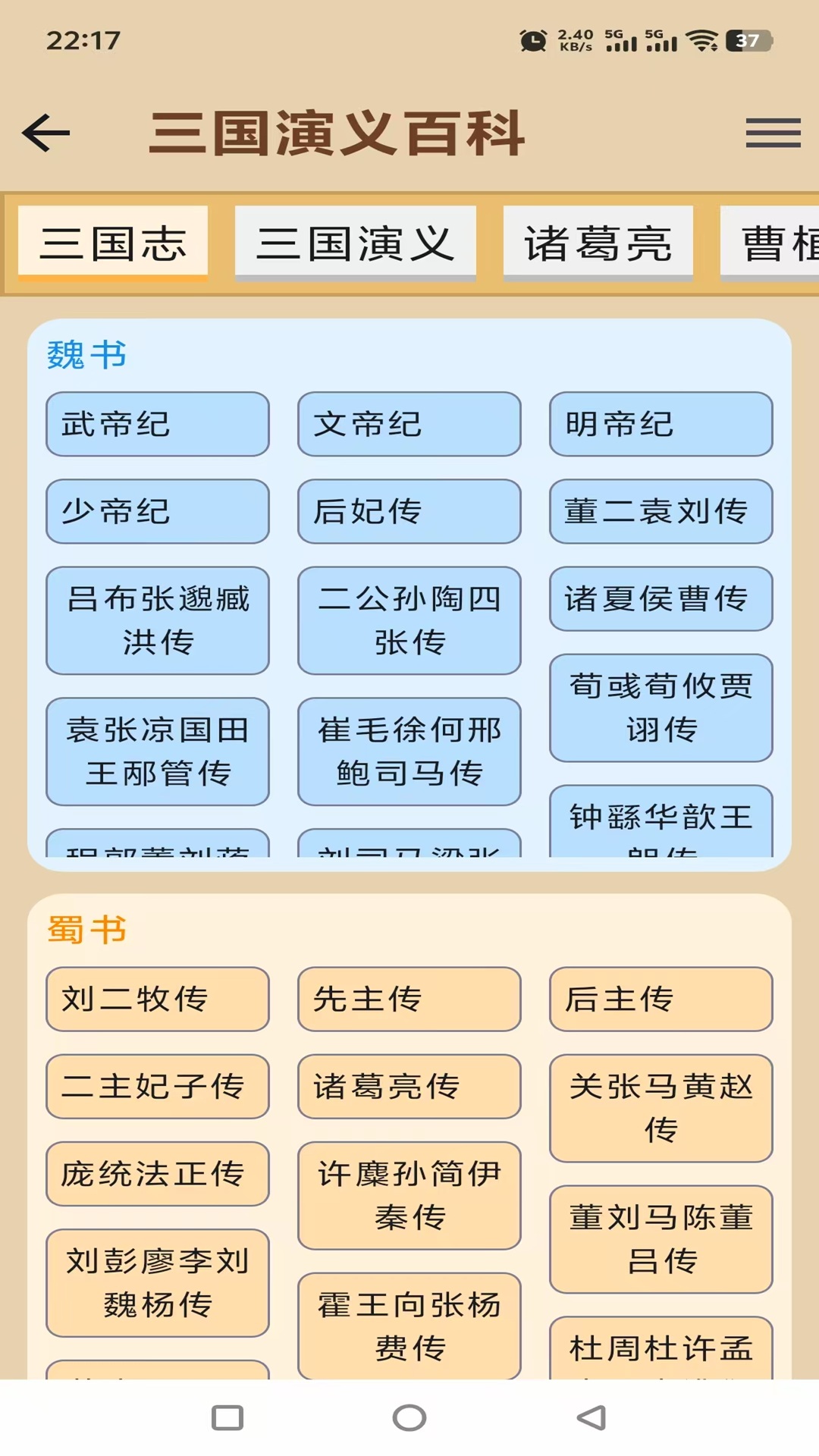 App内置庞大而详尽的三国资料库,涵盖数百位历史人物的生平事迹、关键战役的来龙去脉,以及耳熟能详的经典故事。通过时间轴、交互式地图或关键词搜索,你可以自由穿梭于东汉末年至三国归晋的百年风云,深入探索每一个历史细节,真正实现边玩边学”。