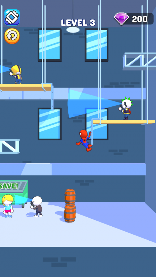 2、因为你可以在墙壁中自由行走,用你超酷的蜘蛛绳快速解决掉敌人;