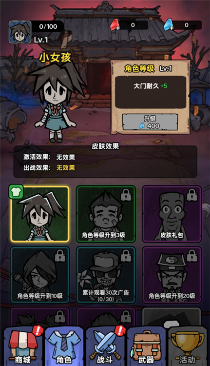 游戏内设计了多样人物角色,玩家可通过提升等级解锁,每个角色都有不同效果。