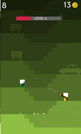 你手中的枪会自动上下摆动,只需要在瞄准敌人时点击屏幕发射子弹即可!简单有节奏感的游戏,搭配具有悦动感的背景音乐,如果能爆头还会有特别音效与奖励!