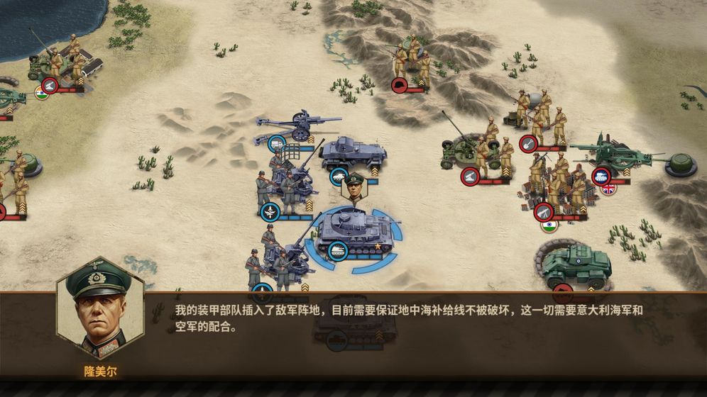 招募部队、空袭、空降、派遣特种部队以及将领、雇佣援军,你的每个决策都将决定战役的走向。