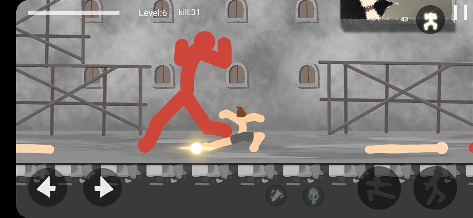 这款游戏对玩家的心理素质和操作技巧提出了很高的要求,你需要操控火柴战士迎战巨大的对手。