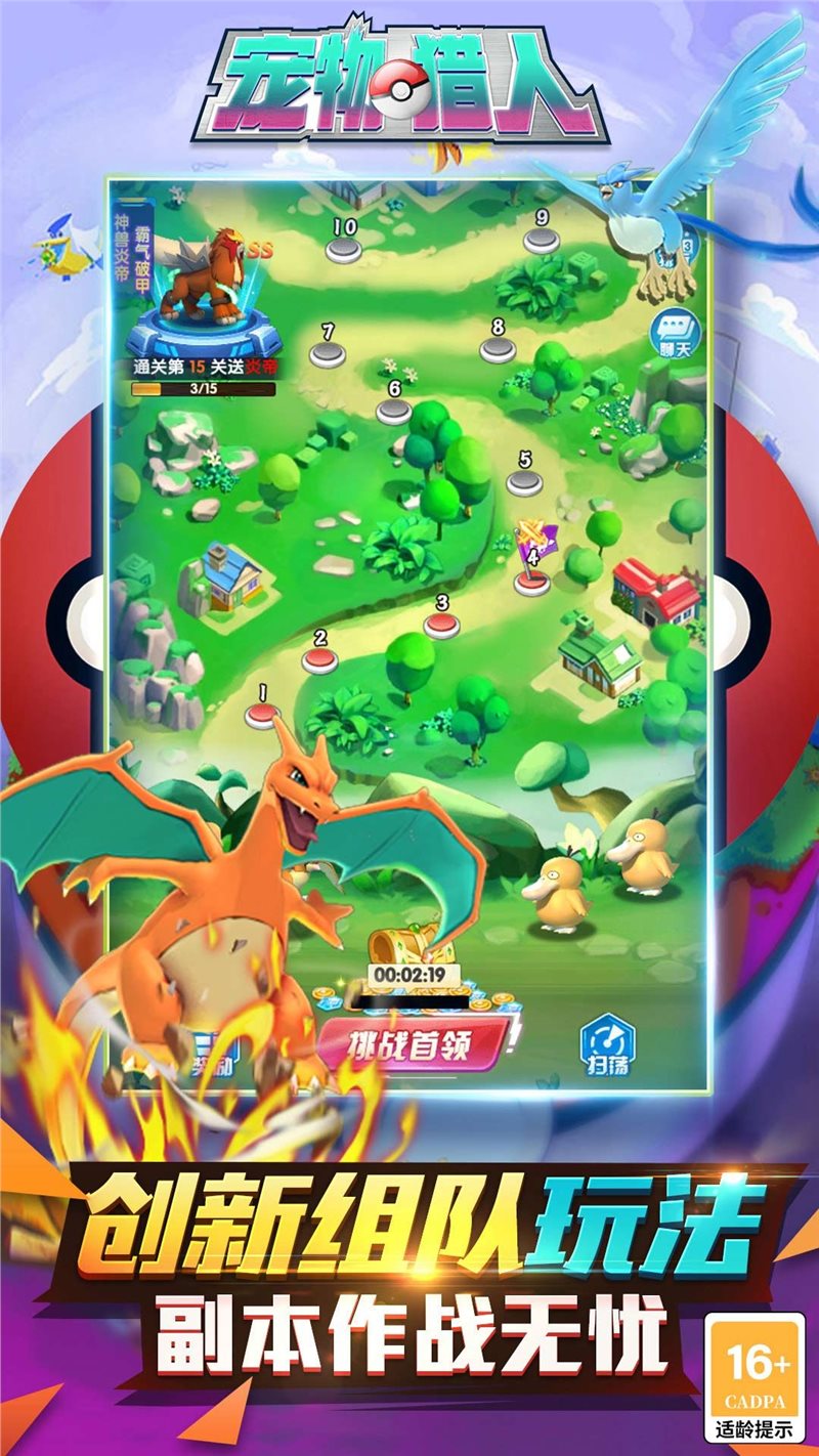 2、多样化的战斗和探险内容:提供丰富的战斗和探险内容,玩家可以在不同的地图中探索未知的区域,并与各种强大的怪物进行战斗,每个怪物都有独特的技能和弱点,玩家需要灵活运用自己的宠物团队,选择合适的战斗策略来击败它们。