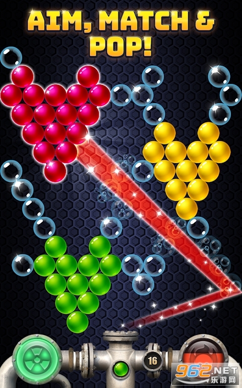 一款休闲益智的小游戏,游戏玩法就是经典的泡泡龙,玩起来就非常上头,非常适合无聊的时候用来打发时间。游戏的玩法非常简单,需要将泡泡射击到上方相同颜色的泡泡上进行消除,上方会有非常多层的泡泡堆,而且会随着时间的流逝慢慢的下降,大家需要精准的瞄准泡泡进行射击,必要时还需要一些独特的技巧,尽力在每一个关卡中都能获得更多的分数。
