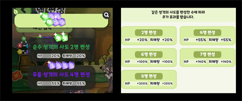 多个相同性格的角色组队会提升全队属性:HP血量、造成的伤害