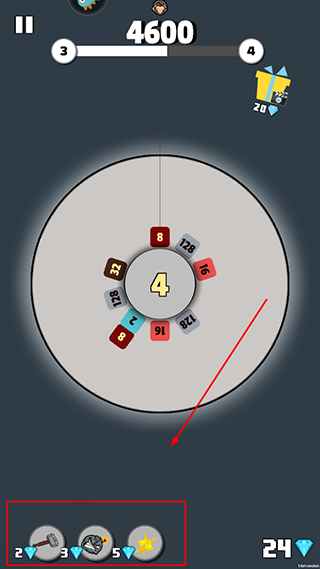 3、注意观察转盘中心掉落的数字,它们是你合成的关键元素;