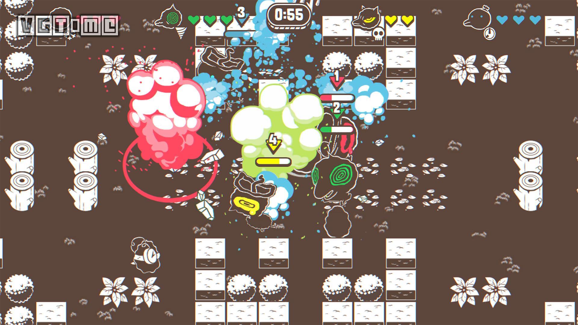 3、多人模式可线下或线上进行,最多支持四位玩家同乐,多人玩法支持金币追逐、涂色大战、经典死斗三种模 式。