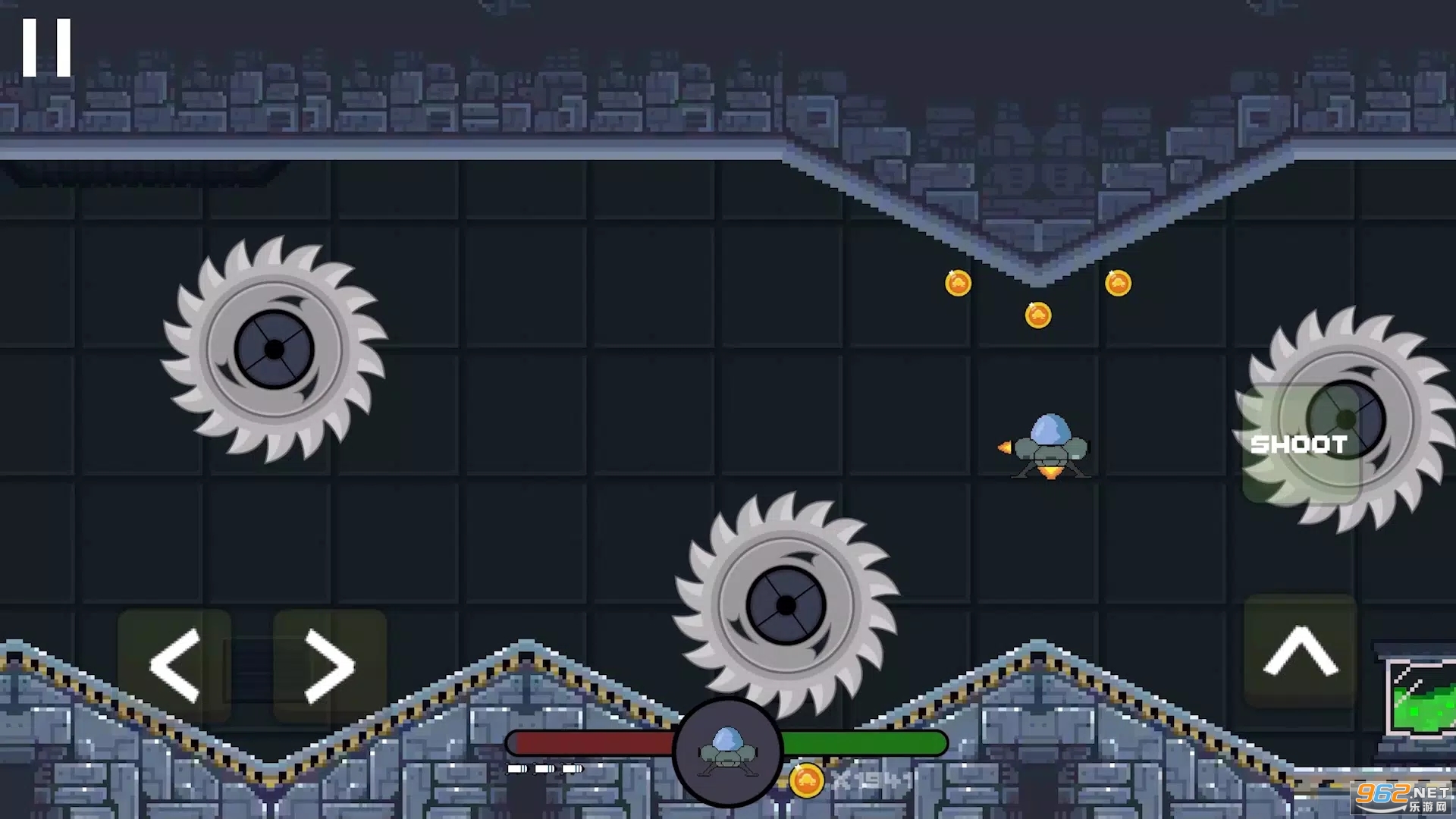 在激动人心的 2D 平台游戏太空飞船冒险“十一号飞船”中,踏上穿越宇宙的肾上腺素之旅!控制最先进的航天器,在充满狡猾敌人和复杂陷阱的危险地形中航行。装备强大的导弹,您将炸开障碍和敌人,在前进时发现隐藏的路径和秘密。驾驶飞船通过一系列视觉上迷人的关卡,每个关卡都有自己独特的挑战和谜题,准备测试你的反应能力、策略和精确度。您是否有能力征服深空的危险并在“十一号飞船”中取得胜利?准备好翱翔于一个充满刺激和危险的世界!