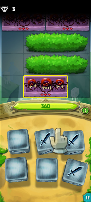 5、可以看到每一个刀剑的骰子可以对前排敌人进行攻击并且造成一点伤害;