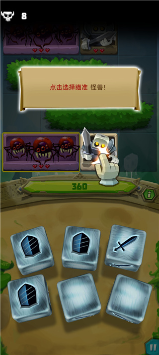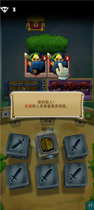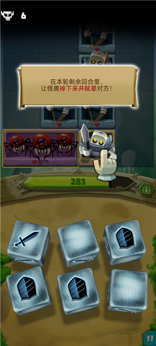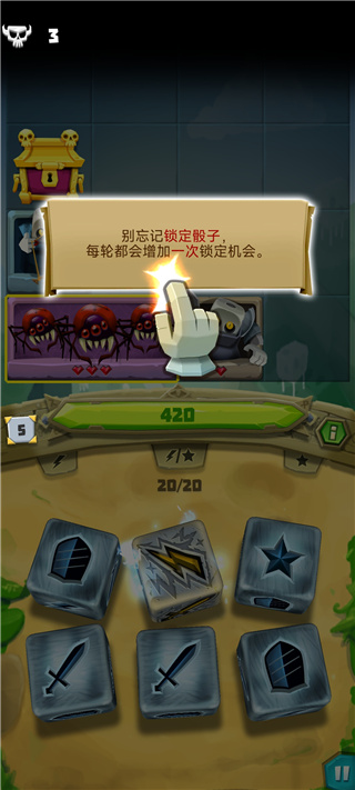 7、当敌人数量增加,骰子会出现新的技能,盾牌则会吸收本轮敌方对你造成的伤害;