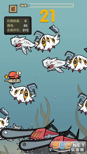 独特的进化系统: 通过吃小鱼,玩家的鲨鱼将逐渐进化为黄金鲨鱼,具备更高的生存能力和攻击力。