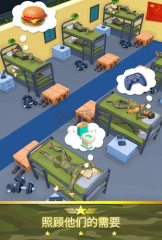 你士兵的健康现在对你的成功至关重要。用适当的设施和培训让他们满意,他们会以增加收入作为回报。一支有动力的军队是一支有利可图的军队!