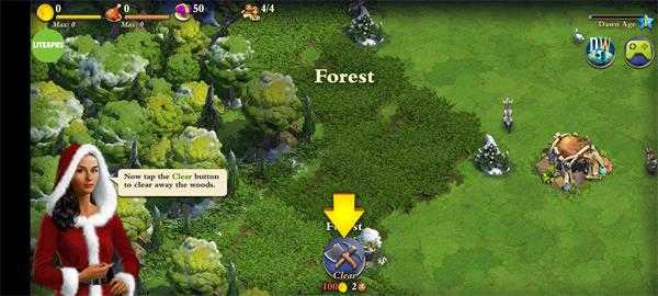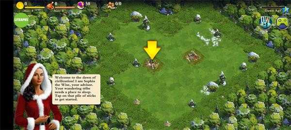 2、进入游戏后玩家可以根据提示在木堆处先建造第一个建筑;