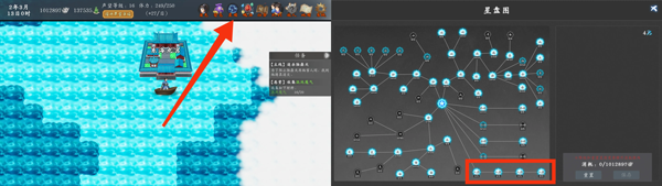 界面右上角打开星图,使用星石碎片加点,星石碎片获取方式:主线/支线任务、悬赏任务、副本黑市购买、副本乞丐奖励、副本小游戏、大地图随机刷新、好感度达标后索要(第三章霁月谷的师太碎片有每5天刷新一次)