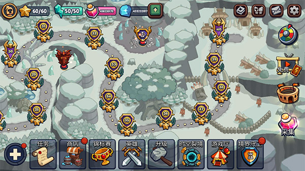 1. 多元防御塔系统:箭塔、炮塔、魔法塔等数十种防御塔任你部署,每种塔不仅攻击方式独特,还拥有专属的升级路径,打造属于你的最强防线。