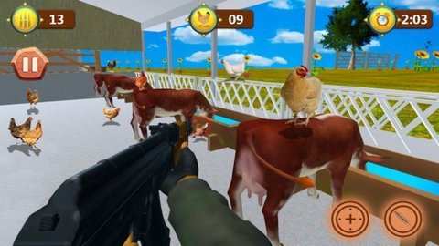 3、拿起武器在各种场景中射击各种公鸡,多样化的玩法十分的有趣,完成任务获得更多奖励。