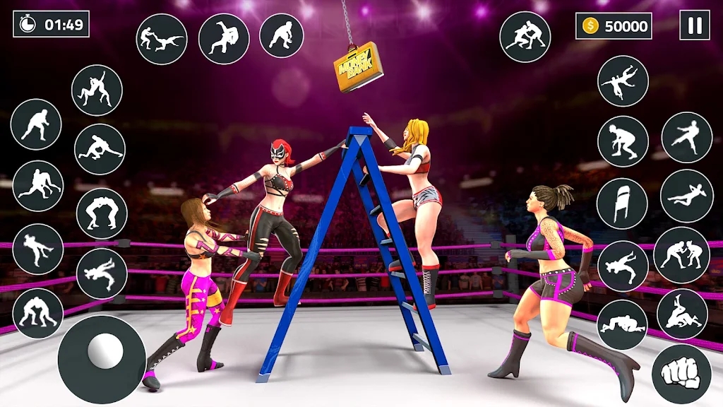 这款以职业摔跤为题材的游戏虽然操作简单易上手,但其背后蕴含着极大的挑战性。玩家需要灵活运用各种攻击手段如近身搏击、远程踢技、强力投掷等极限动作压制对手,最终将其击倒在地,感受胜利带来的成就感。