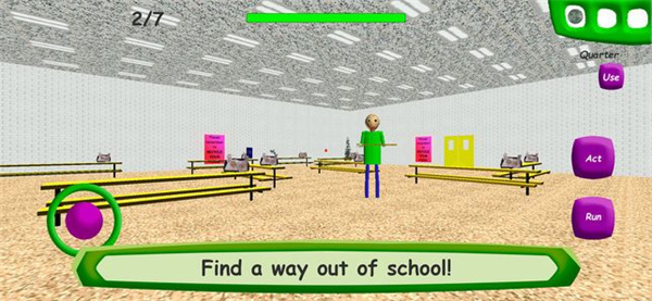 巴迪的基础学习教育这款游戏的任务其实很简单,只要收集七个笔记本之后逃离学校就过关。然而你以为这是一个益智趣味游戏那可就错了,因为这其实是一款恐怖游戏!在收集笔记本的过程中,玩家要答对巴迪老师提出的问题,答错的话,就会被巴迪老师在背后紧追不舍!巴迪老师的手中,可是拿了一把超级大的戒尺!在被巴迪老师追赶的过程中,学校的各个角色也会为玩家设置障碍,尤其是当巴迪老师戒尺拍打手掌的声音响起,更是增加了这款游戏的紧张程度!当玩家的问题全部答错,那就等着接受巴迪老师的制裁”吧!