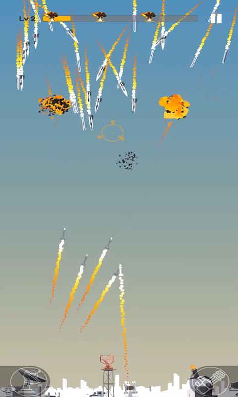 2、面对越来越密集的导弹袭击,完成高难度的拦截任务,争取获取更高的分数;