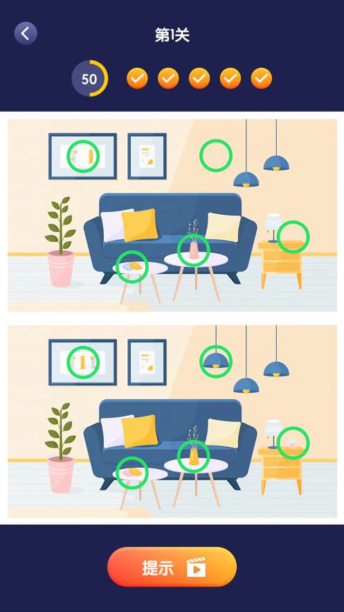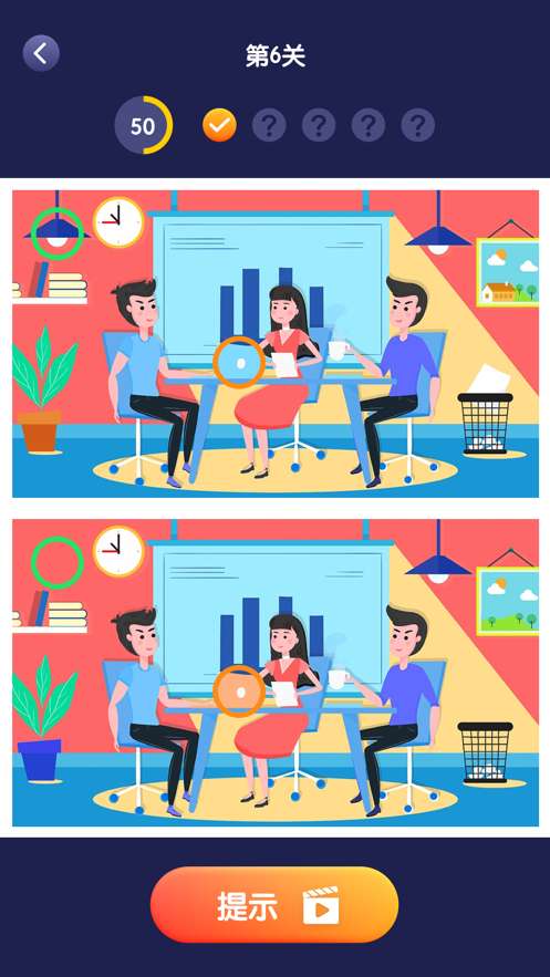 3、敏锐的目光发现所有的不同,成功解决每一个谜题,就能够顺利闯关。