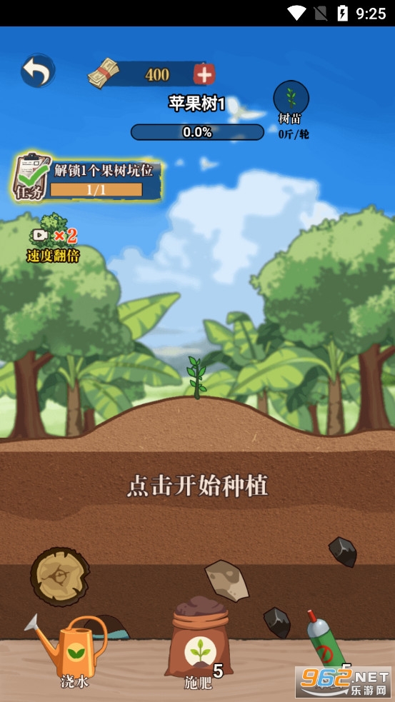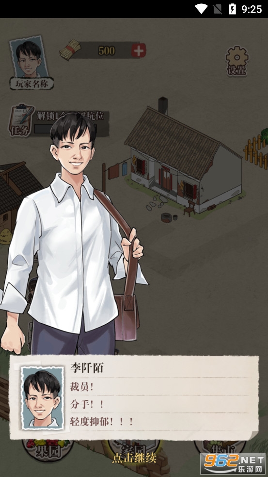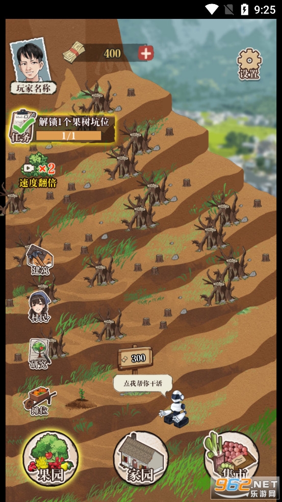 三年之期已到,小伙游子归乡,歪嘴一笑,开始就定一个小目标,想要致富还得先种树!这是一款模拟经营类游戏,玩家可以通过种植维护果树收获果实,在集市上出售果实获取金钱用于升级家园并解锁更多果树,最终实现从小破屋变为豪华乡村大别墅的小目标。