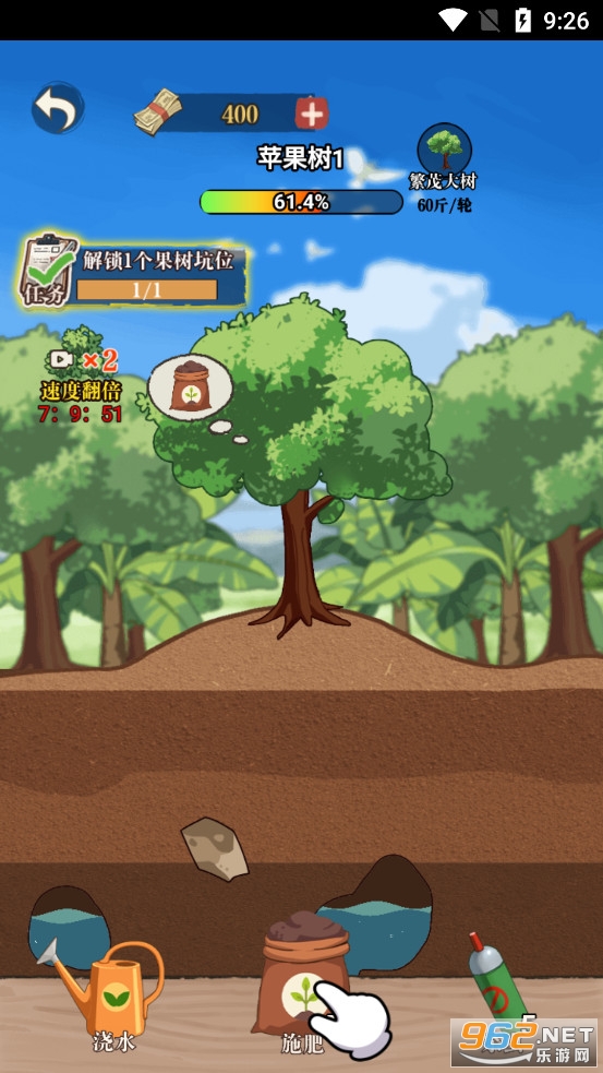 趣味的模拟经营游戏,玩家将经营一片果园,可以种植各种果树,可以浇水施肥除虫等,可以将收获的水果去集市售卖,可以雇佣村民等等,玩法丰富,游戏已修改免广告,轻松体验。