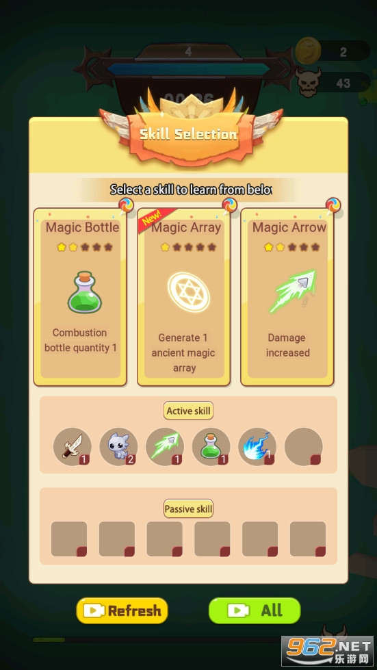趣味的割草游戏,玩家将控制骷髅人与海量的敌人对战,有着大量的技能可以学习,还有着各种装备可以收集使用,游戏已修改,不用看广告就可以获得奖励,比如一次获得三种技能等等,有需要的朋友可以下载试试。