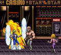 BOSS战,胖子『マクガイア(McGuire)』的滚球特技虽然厉害,但他使用的频率不高。胖子身体庞大,挨大面积也大,主角经常使用飞脚就能使胖子只顾防守无暇攻击,只要主角与胖子重合,就可以尝试挥拳攻击,往往可以绕过胖子的防守,如果胖子仍然格挡,那就继续飞脚调整位置,直到拳头可以命中胖子。