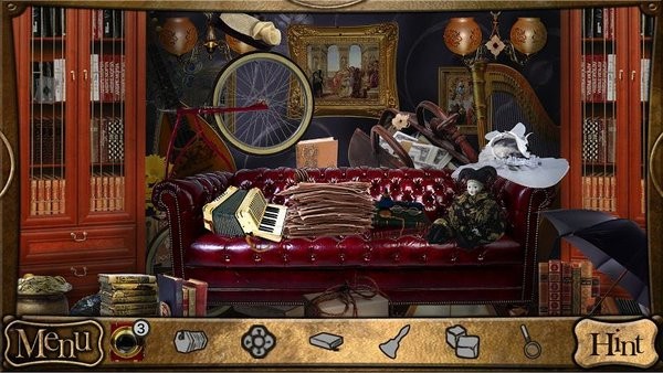 2、玩家可以使用福尔摩斯的经典调查工具,如放大镜、探照灯等,协助自己更高效地寻找隐藏物品,增加代入感。