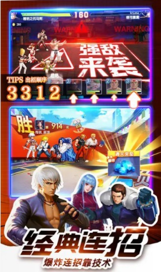 2、拳皇对决策略对战,无需操作就可以体验到拳皇激战,战斗非常的智能,格斗打击感很爽。