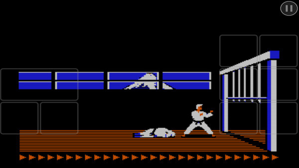 第二阶段:进入内室后敌人从白衣变成粉衣服,实力变强了(话说空手道实力不是以什么带什么带区分的吗?怎么从腰带颜色的区别变成衣服颜色的区别了,难道表示区别不止差别一条带?)中间还要记住必须击退飞鹰,(时机要把握准)