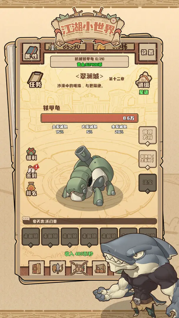 《江湖小世界》安卓版是一款创意爆棚的放置类冒险手游!在这里,你将招募一群性格迥异、技能独特的动物侠客,组建属于你的萌系江湖战队。无需高强度操作,挂机也能轻松获取海量资源,稳步提升角色战力,升级神兵利器,一路闯关打怪,畅享轻松又上头的异世界冒险之旅!现在就下载游戏,开启你的趣味闯关与策略养成新体验吧!