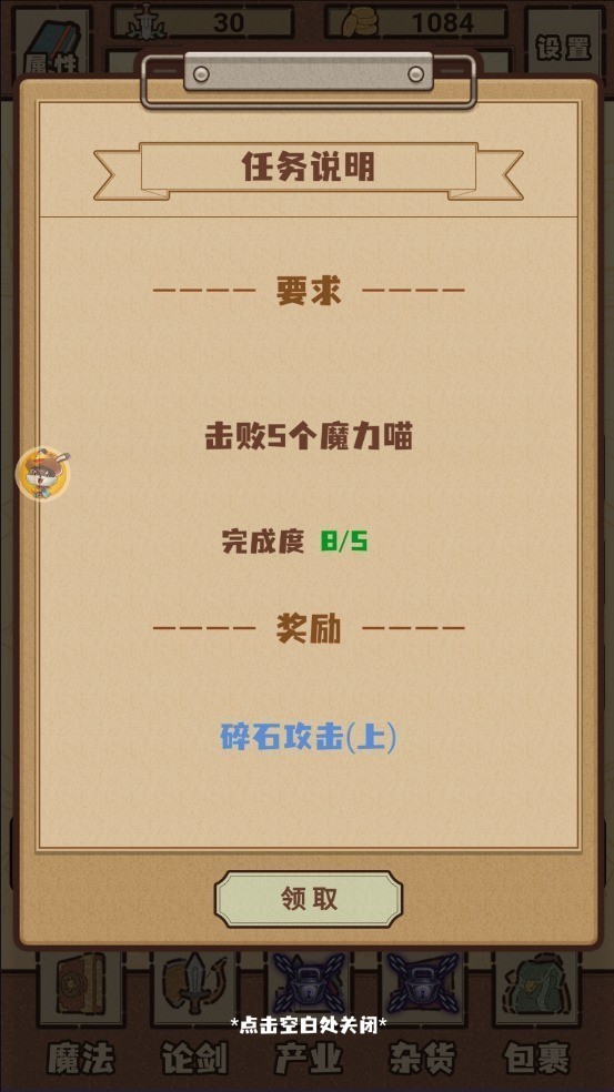 2. 点击战斗,解放双手:初期通过点击屏幕击败魔力喵”,积累能量后即可开启自动战斗模式,轻松挂机也能赢!