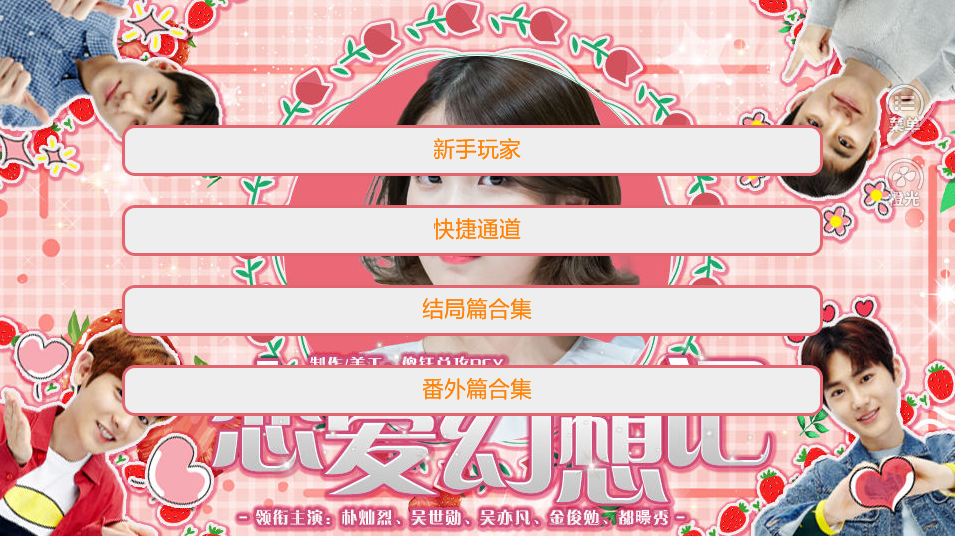 恋爱幻想记游戏是橙光游戏中的一个,和其他的游戏一样,同样是文字剧情游戏,游戏中有吴世勋、朴灿烈、吴、金俊勉、都暻秀等明星,小粉丝们快来玩这款恋爱幻想记游戏吧!游戏中丰富的剧情情节攻略,恋爱幻想记游戏真的超好玩的,快来下载吧