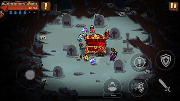 3、沿途的被动道具可以从各方面提升战斗能力,击败本关所有敌人后,打开宝箱进入下一关。